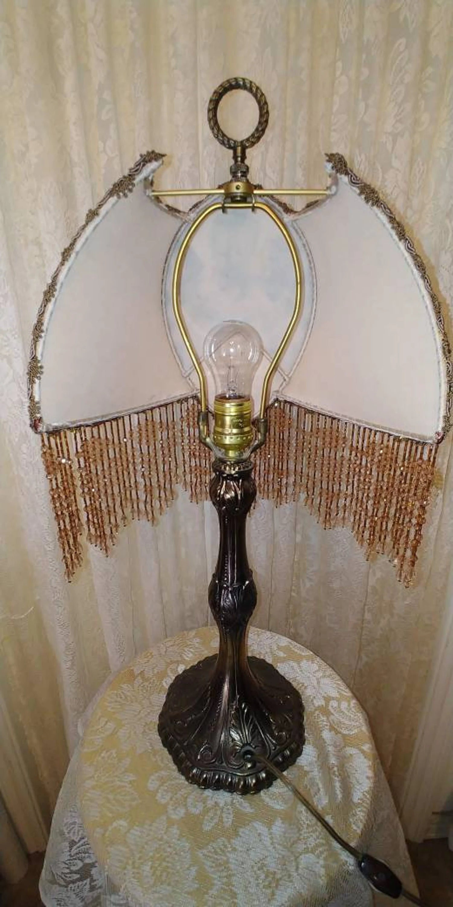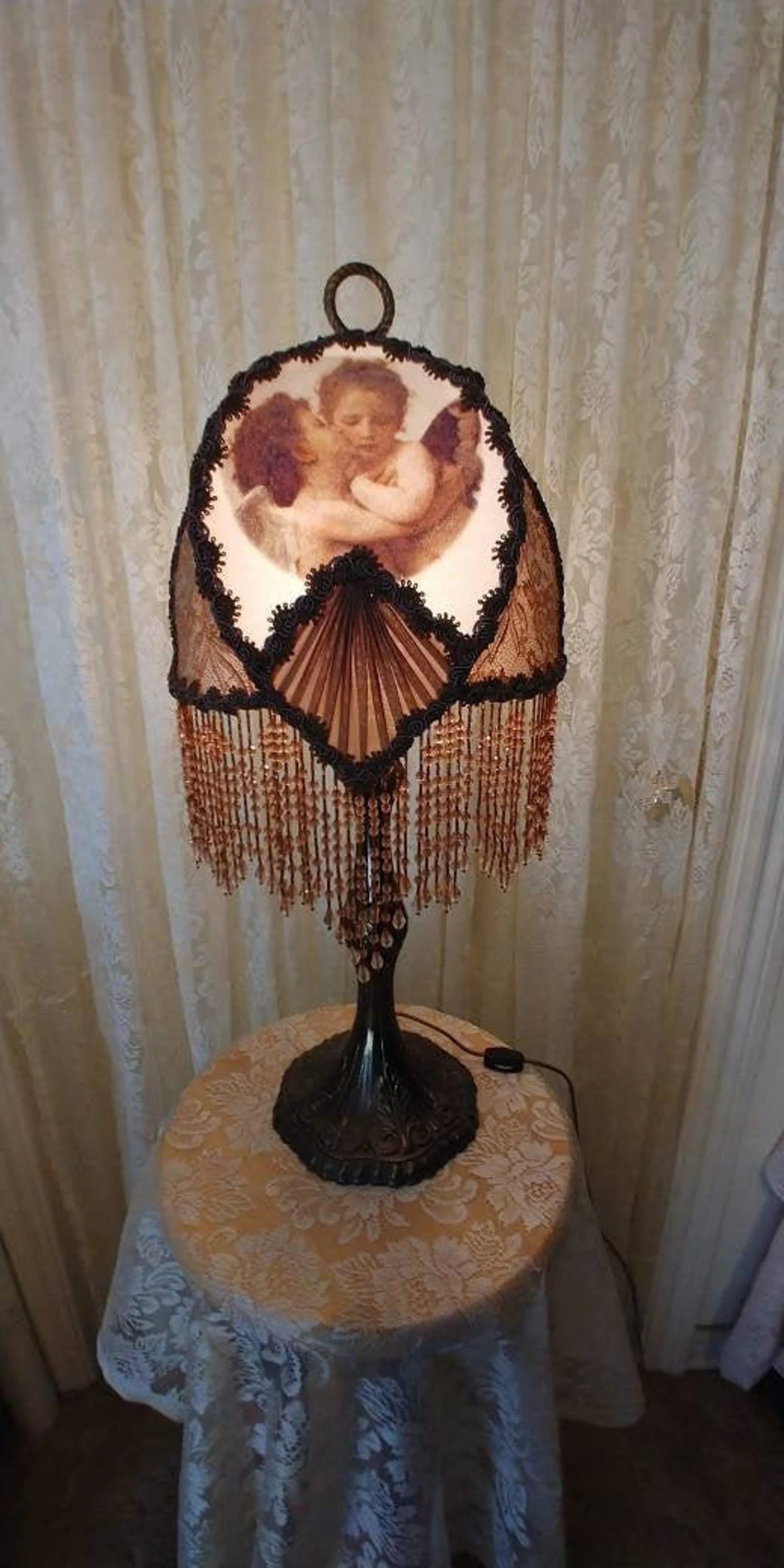 Angel Blessings, Vintage Half Lampshade with Bead Fringe and lamp