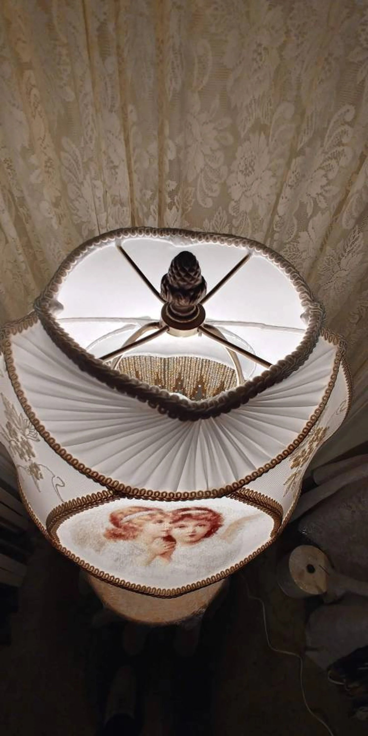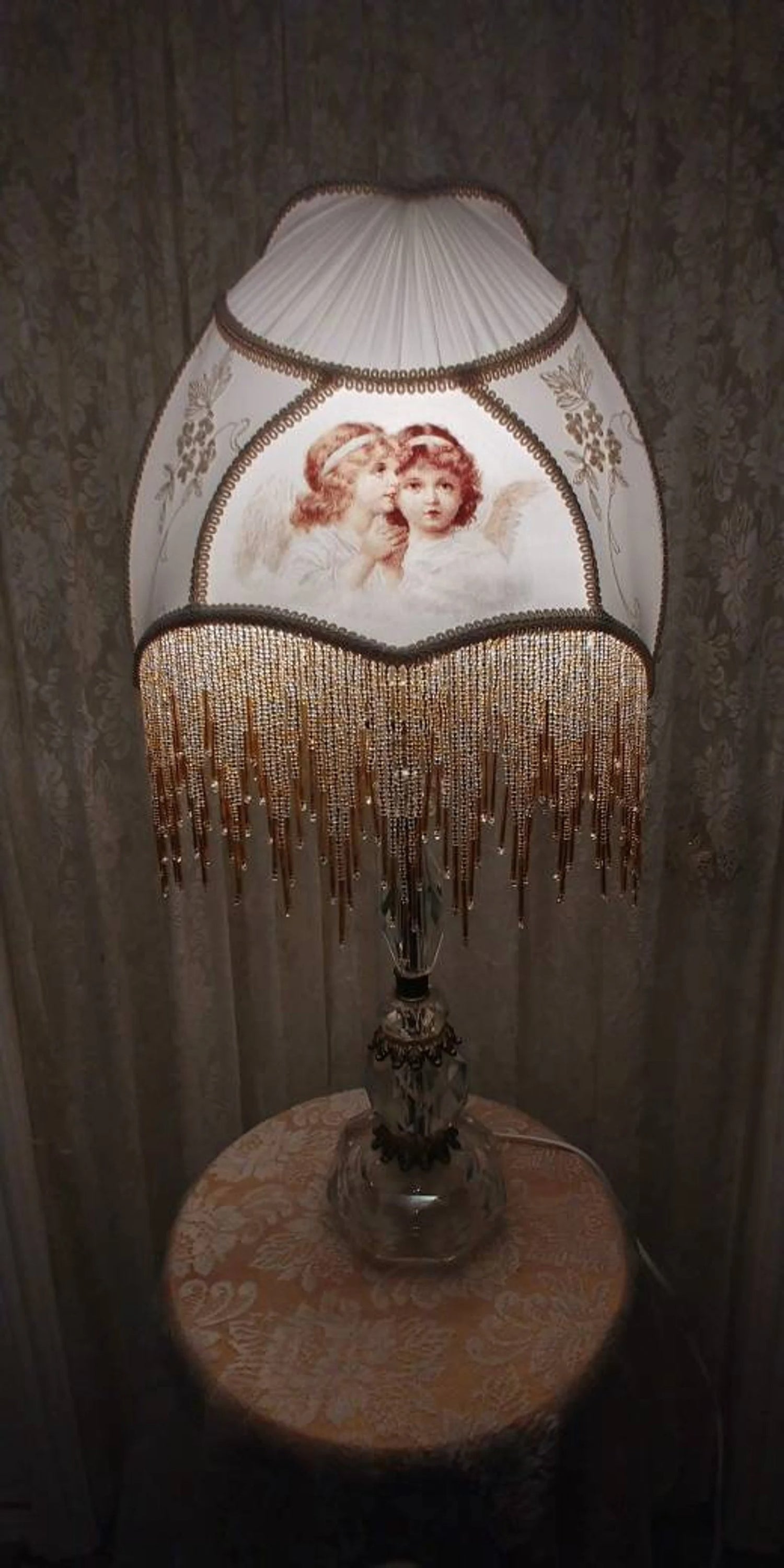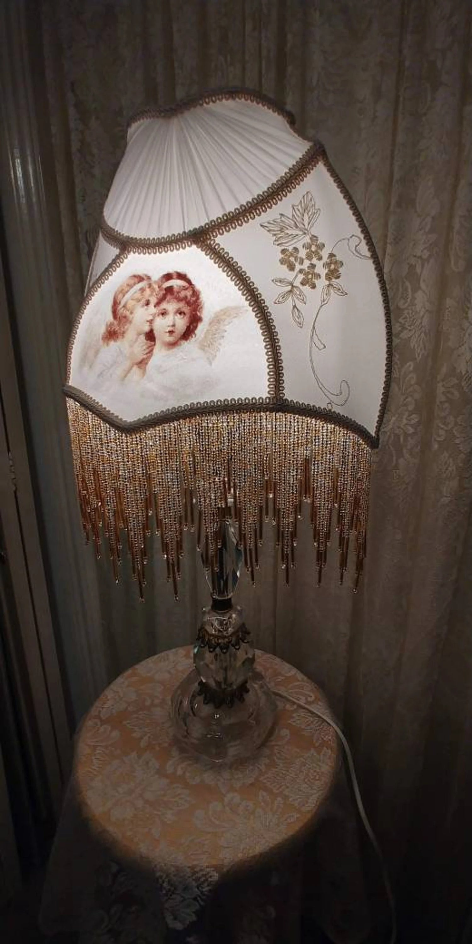 Angel Victortian Lampshade 25" ht. on Crystal lamp all glass bead fringe