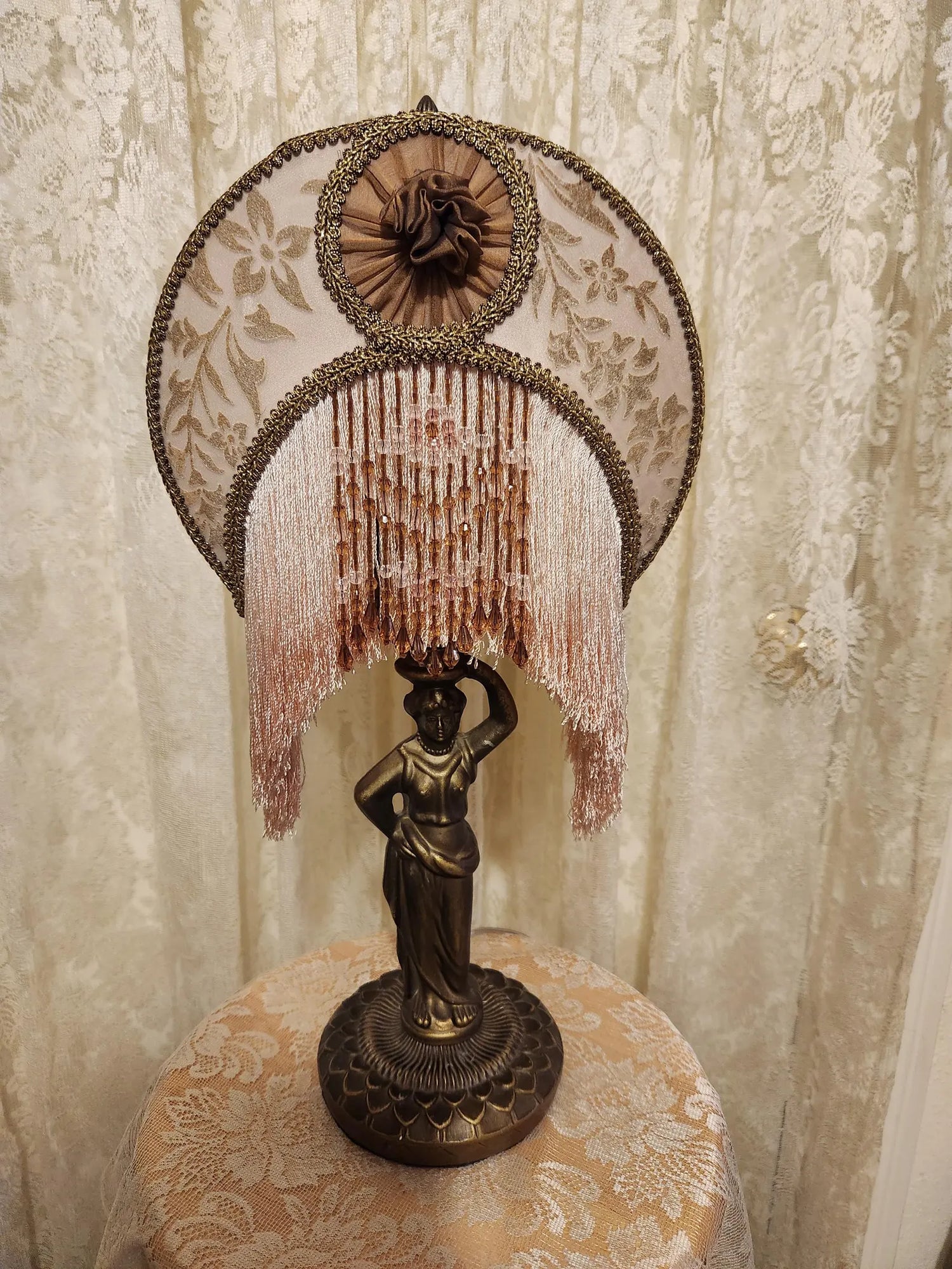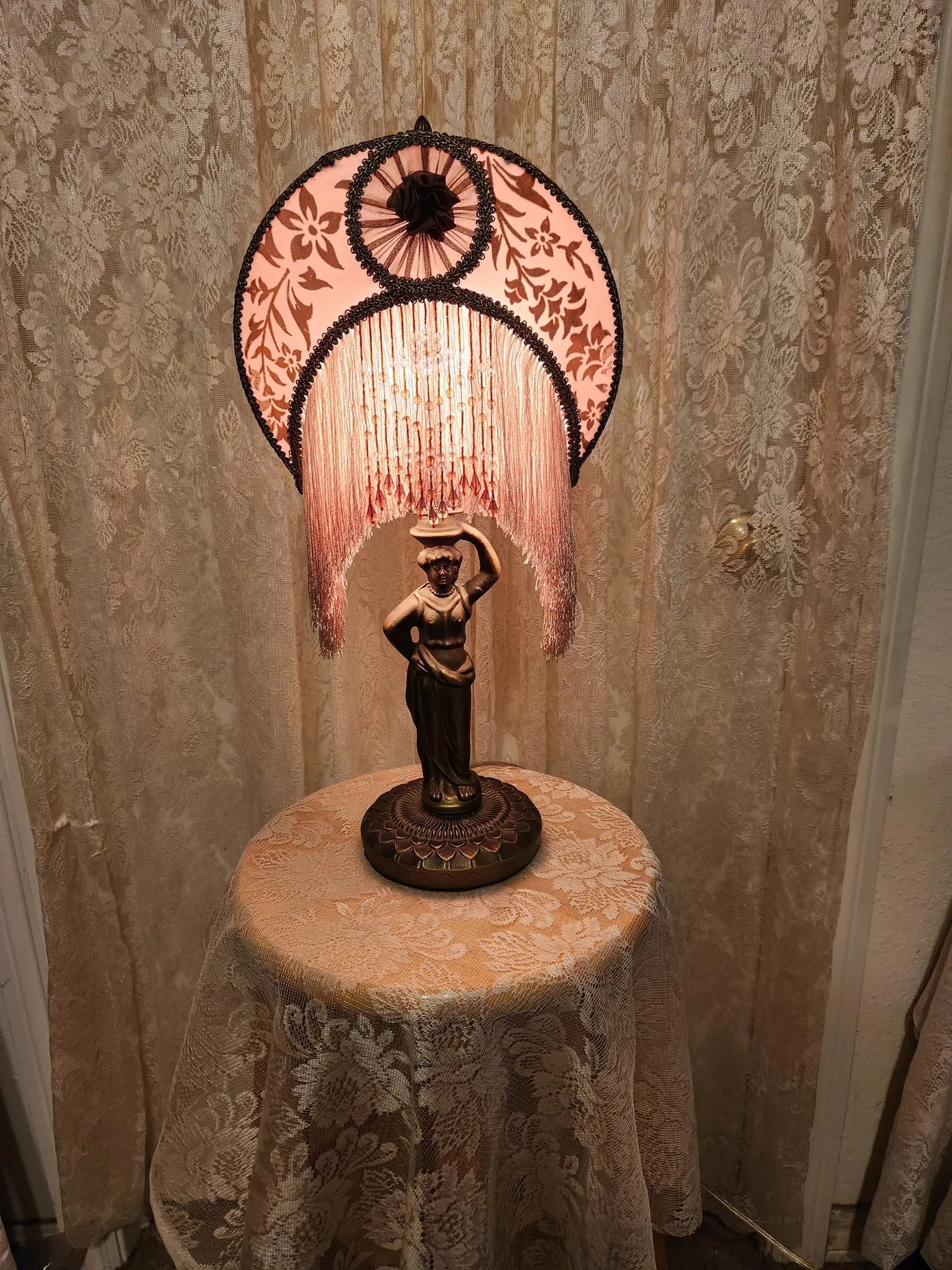 Vintage goddess lamp with Half Moon Crescent lamp shade,